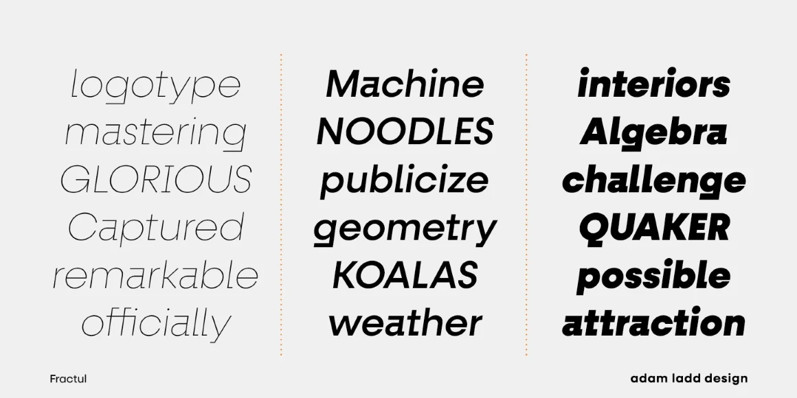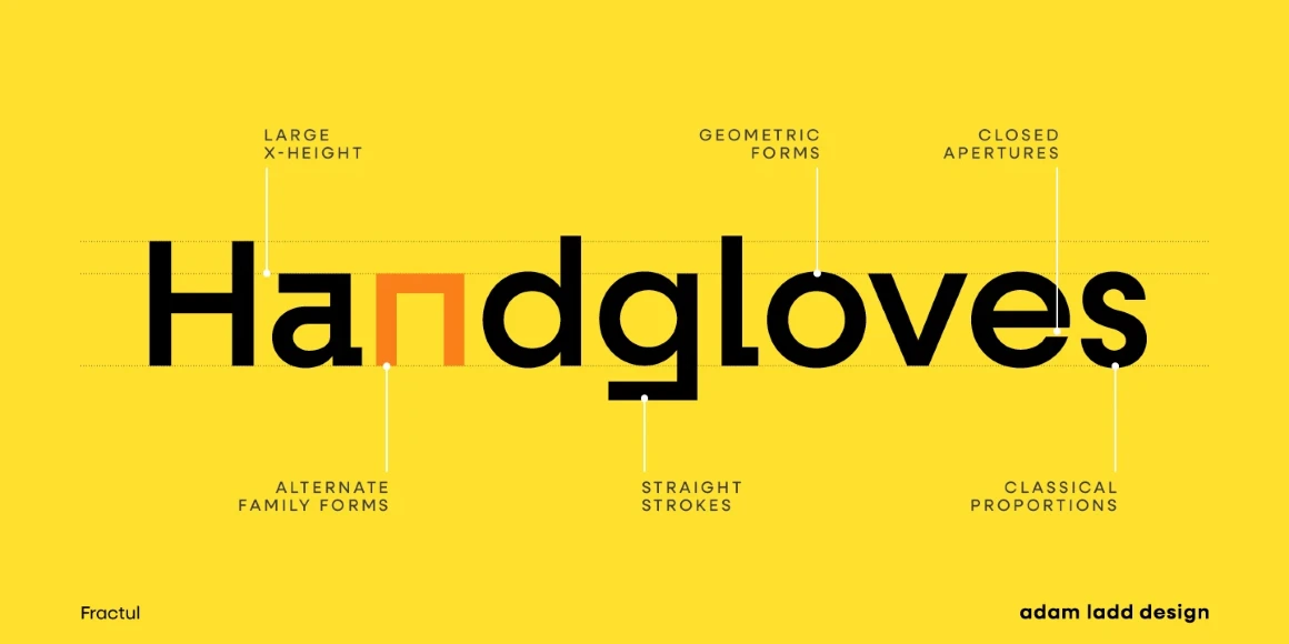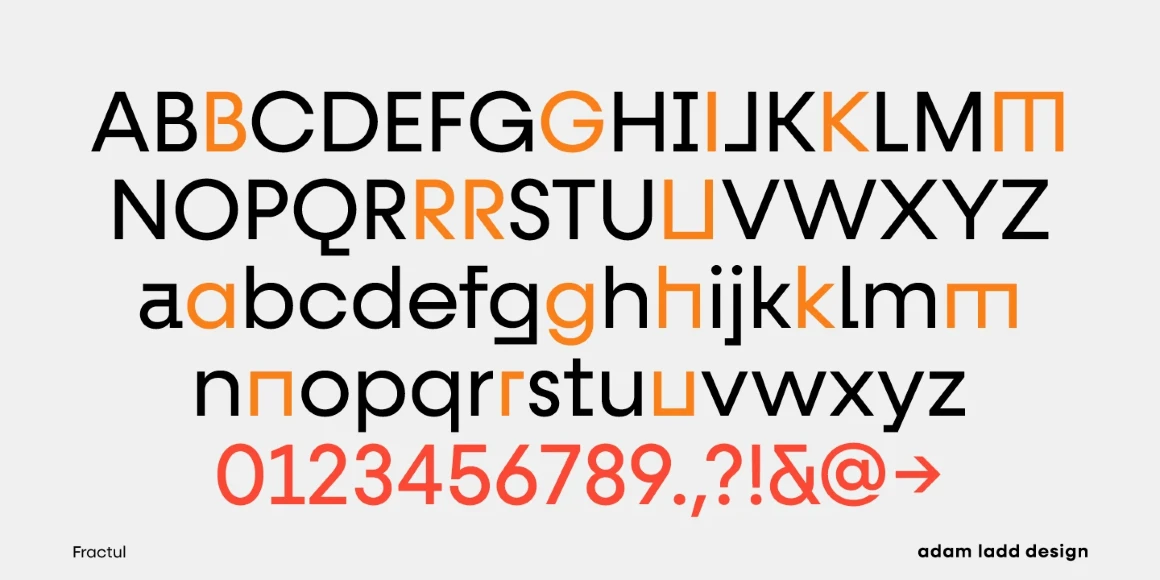 Fractul and Fractul Alt are architectural geometric sans serifs. Dramatically modern because of a larger x-height with a more distinct and avant-garde voice — most evident in characters where specific strokes have been straightened for a strong angular appearance. Fractul has over 600 glyphs and many OpenType features: 6 stylistic sets, standard and discretionary ligatures, case-sensitive punctuation, fractions, numerators, denominators, superscript, subscript, and even a slashed zero.