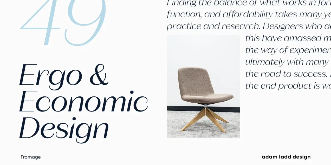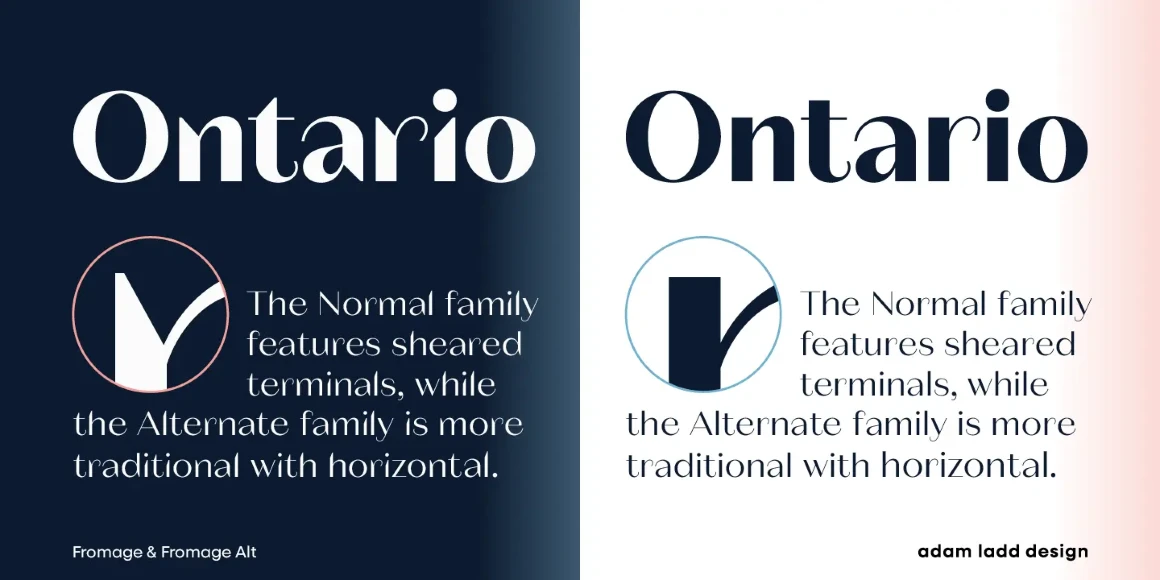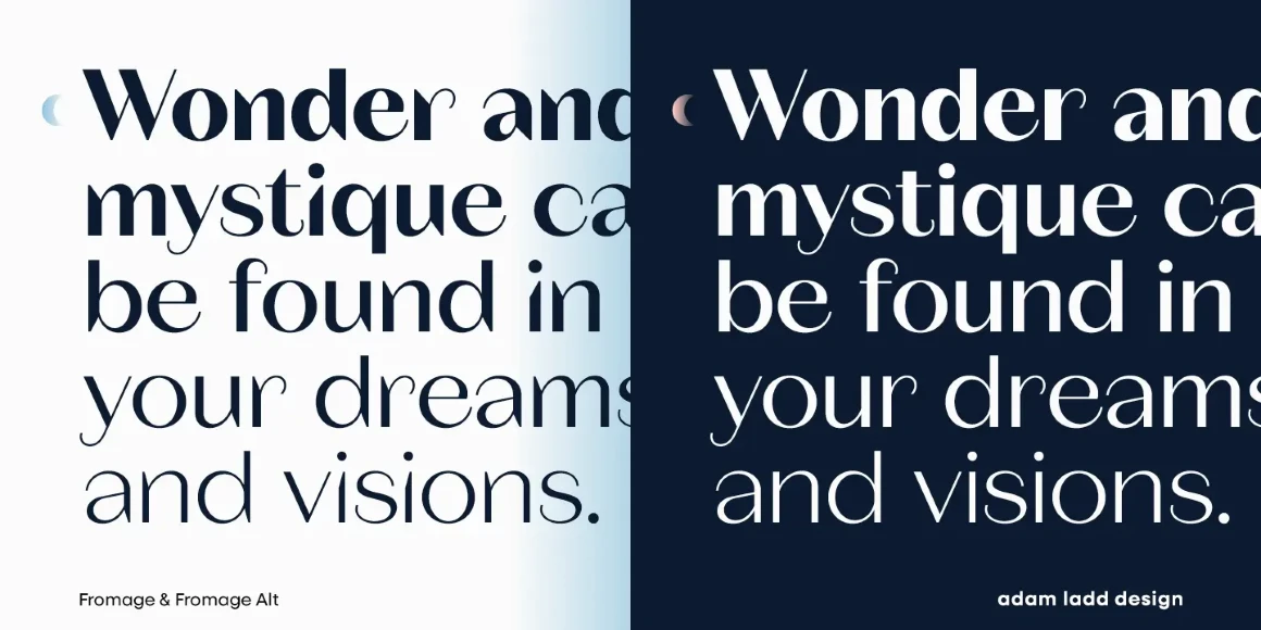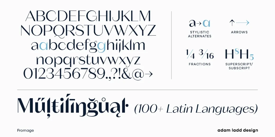 Fromage and Fromage Alt are modern, high-contrast sans serif typefaces that balance the unexpected with restraint. Designed with Adam’s signature style, an elegant air and a dynamic rhythm make them an obvious choice for fashion, beauty, and luxury branding. While all have a generous x-height and round forms, Fromage uses angled and elongated terminals, and Fromage Alt has flat terminals, making it more stately. Fromage and Fromage Alt have flexibility and legibility for diverse applications. Now with italics.