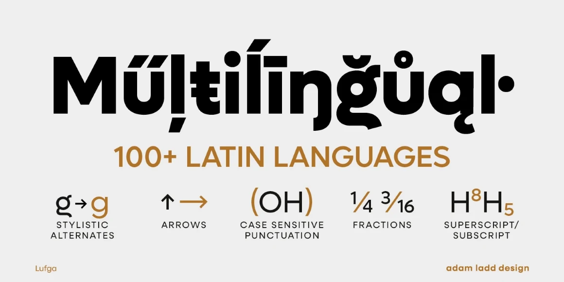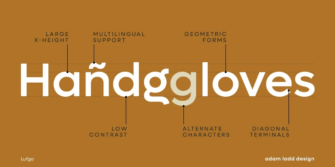Lufga is a uniquely different, geometric sans serif font family. It has modern individuality and boasts distinctive alternates for when you want to set your project apart from the rest. Most notably, the unexpectedly unique double-story g and stemless u. With a minimal design, large x-height, and thin through black weights (with italics), Lufga is versatile, from reliable text to stylish display. The opportunities are endless! Branding, advertising, packaging, magazines, websites and more!