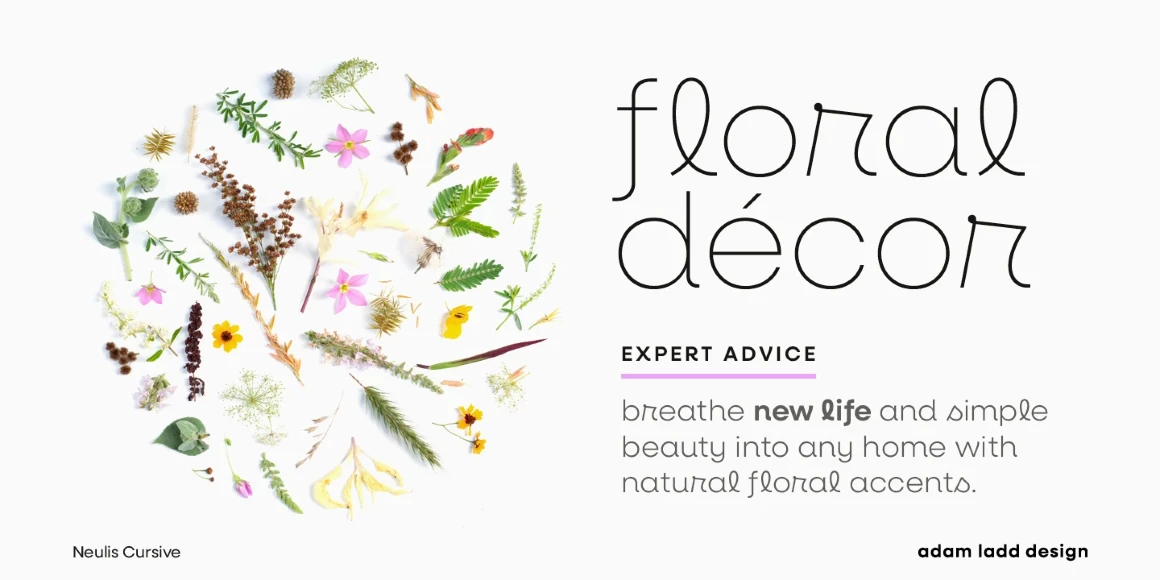 Neulis Neue, Neulis Cursive, and Neulis Sans are, to varying degrees, a mash-up of a geometric sans serif and jovial upright script. Neulis Neue, once Neulis Alt, is pleasantly warm thanks to a handful of primary letterforms. Neulis Cursive, formerly Neulis, is the most playful of the bunch — punctuated with script-like letterforms. And Neulis Sans, brand new to the family, is geometric and dependable. Think of the three families on a dial; how much fun do you want to inject into your project?