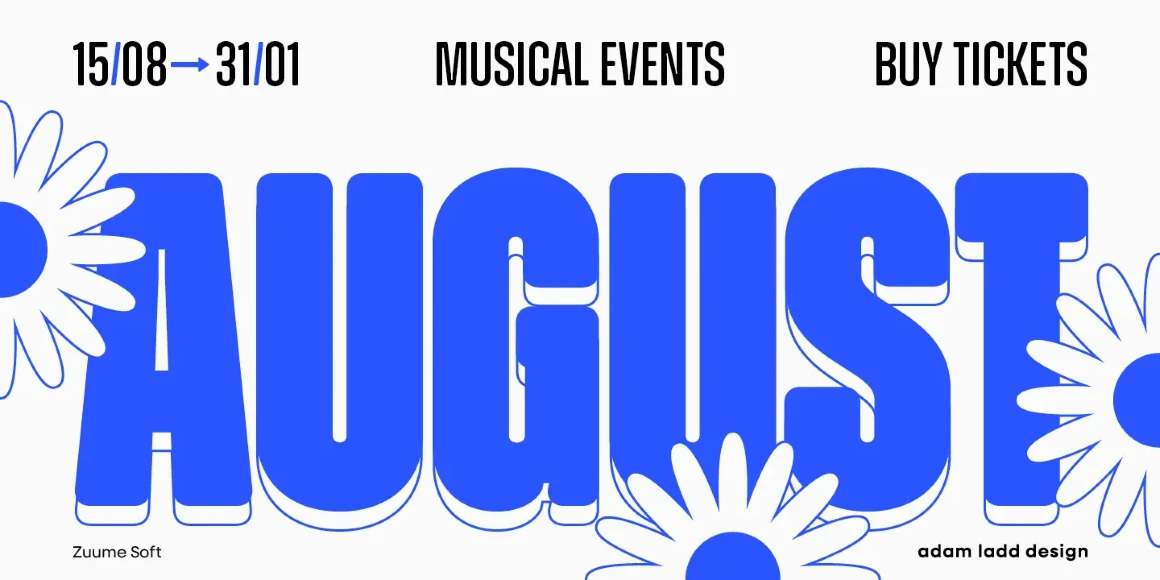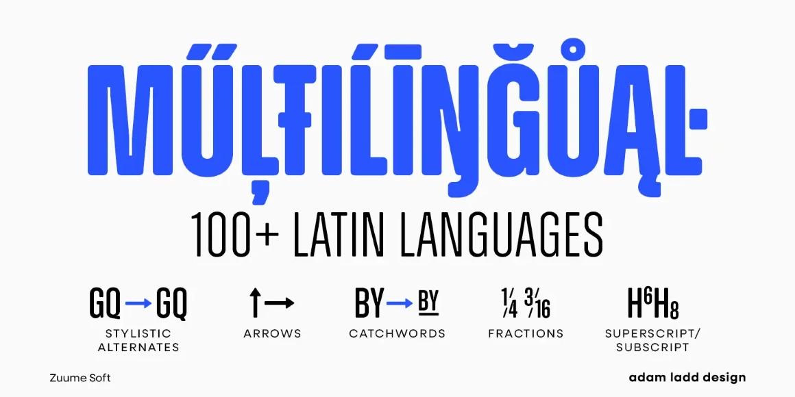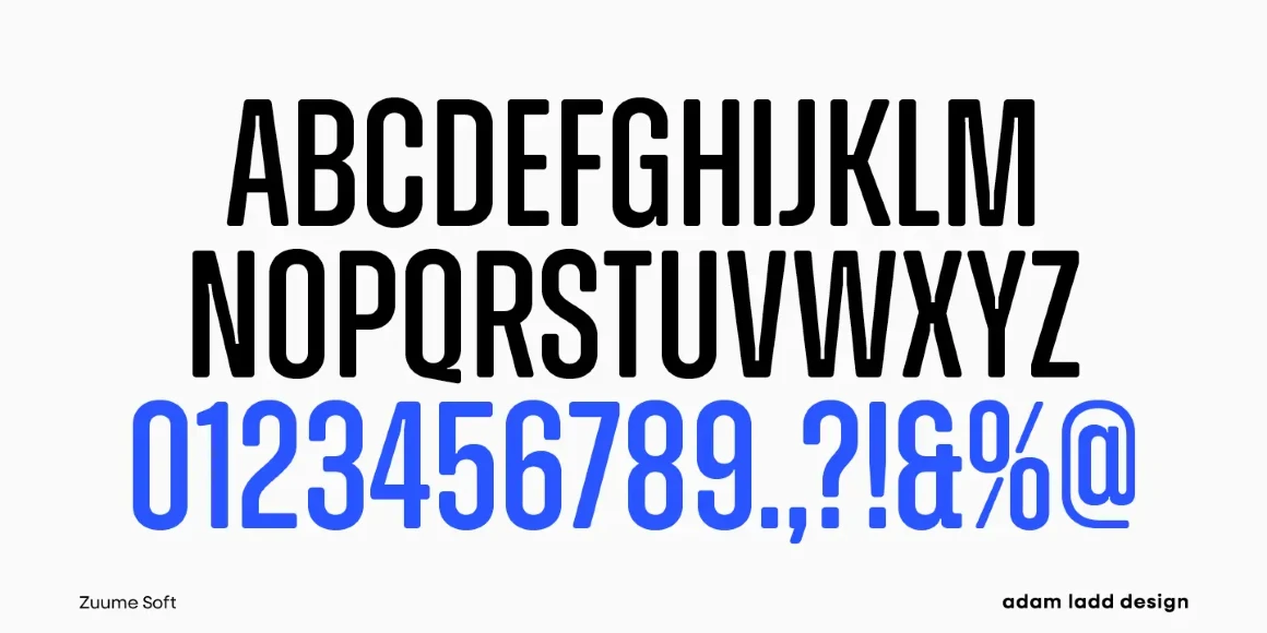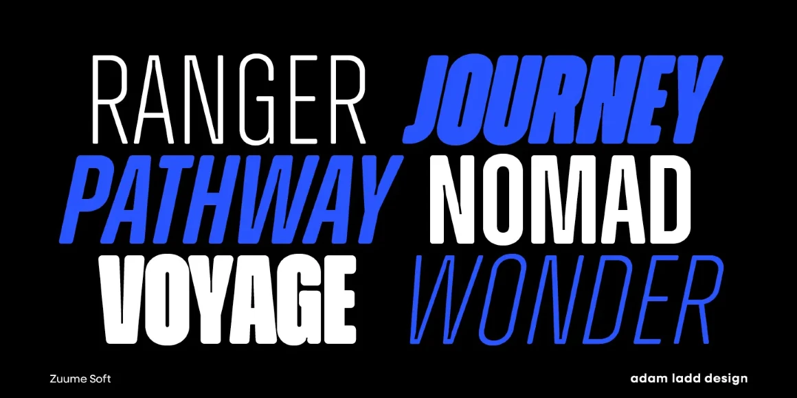 Zuume Soft is a charismatically dichotomous condensed sans. Sister to Zuume, it is staunchly upright in its stance, but round where corners should exist. This family will enliven magazine headlines, media brands, fitness packaging, kidlit book covers, in-your-face sports entertainment, festival posters, or anywhere else designers want to create playful drama. The family ranges from a delicate Light to an impactful Black. Use the compelling and versatile Zuume Soft and make your voice heard.