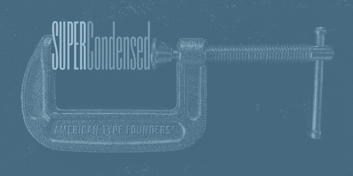 When you need impact in a tight space, ATF Super Condensed offers 42 fonts to try — six widths with seven weights per width. The design is based on Extra Condensed Gothic No. 1, a metal typeface released by Inland Type Foundry in 1905. American Type Founders Company acquired Inland in 1911, and continued to produce the font, as well as Extra Condensed Title Gothic No. 12, an all-caps version of the same design. This headline-making font family is ideal for magazines, book covers, posters, and campaigns.