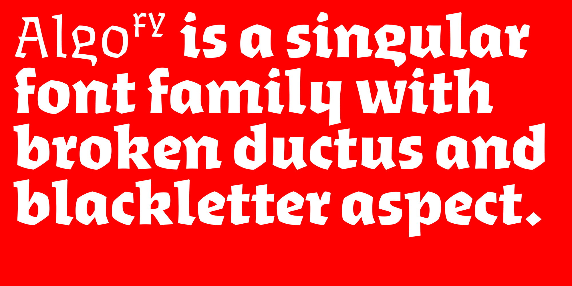 Algo FY is a blackletter-inspired display serif blending broken ductus with calligraphic forms for a bold, sculptural presence. Available in three distinct weights: sculptural, rustic, and dynamic, it features differentiated in- and out-strokes along with alternating concave and convex curves, giving it a spontaneous, unpredictable rhythm. With an antique, mystical aura, it’s perfect for fantasy or medieval themes. Seen in use for Fantasy Zombicide games titles, cards, manuals, and logo.