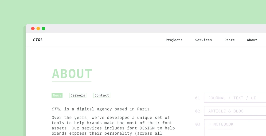 Typographer covers web use (up to 15K pageviews / month) and unlimited prototyping. Learn more in our FAQ.