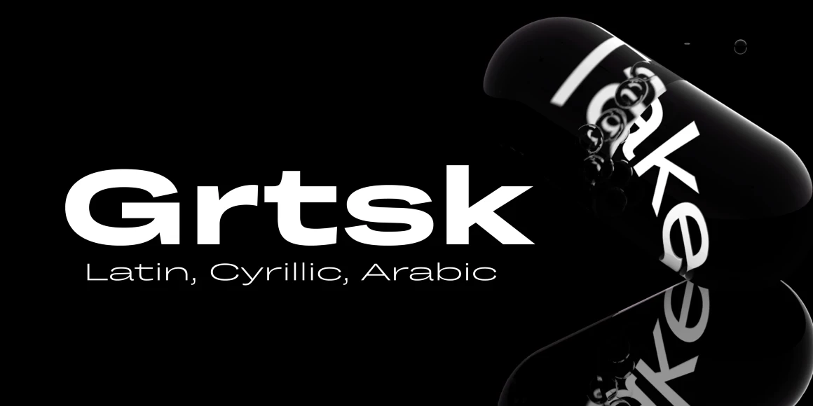 Grtsk is a sans serif superfamily of 126 sans fonts and one variable font combining weight, width, and slant into an infinitely versatile system. With styles from thin to bold, widths from narrow to extra wide, and 15-degree slants and back-slants, it adapts to contexts from expressive to formal. Seven widths are named after metric prefixes, from Zetta 10²¹ narrow to Mega 10⁶ wide. Inspired by grotesques of the 19th and 20th centuries, Grtsk blends humanist and rational forms for contemporary print and digital use.