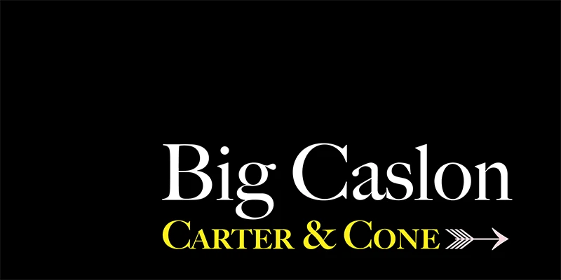Unlike the consistent text faces by William Caslon, the three largest sizes made by the Caslon foundry are uncommon. Perhaps they were the work of another — or he was in a bold mood? While Caslon’s text types have been revived, the forceful and a touch eccentric display sizes had no revival until Carter & Cone’s Big Caslon. This version, designed by Matthew Carter, expands on the timelessness of the display face and allows for new uses. Available in Regular, Bold, and Black and companion italics.