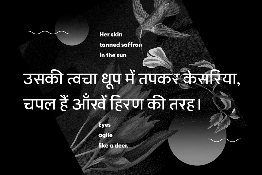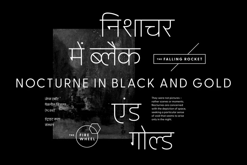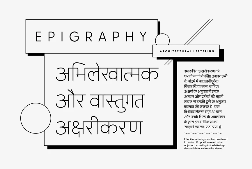 Greycliff Devanagari CF is an adaptation of the original Greycliff typeface to the Devanagari script. The geometric, monolinear design of the original sans serif is recreated in full, allowing for cohesive multilingual applications between English and Hindi, Marathi, Nepali, Sanskrit, and more.