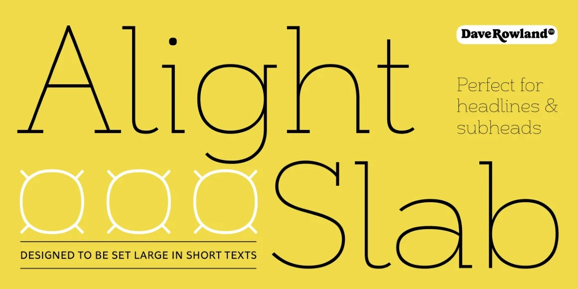 Alight Slab is, wait for it… A light slab! Designed to be set large, in headlines or subheads and (very) short paragraphs of running text. It has slightly super-elliptical forms and crisp details, giving it a contemporary look. Alight Slab features automatic fractions, a discretionary ct ligature, and a capital sharp s. Look no further than Anultra Slab for an ultra-bold accompanying typeface.