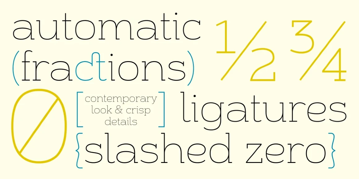 Alight Slab is, wait for it… A light slab! Designed to be set large, in headlines or subheads and (very) short paragraphs of running text. It has slightly super-elliptical forms and crisp details, giving it a contemporary look. Alight Slab features automatic fractions, a discretionary ct ligature, and a capital sharp s. Look no further than Anultra Slab for an ultra-bold accompanying typeface.