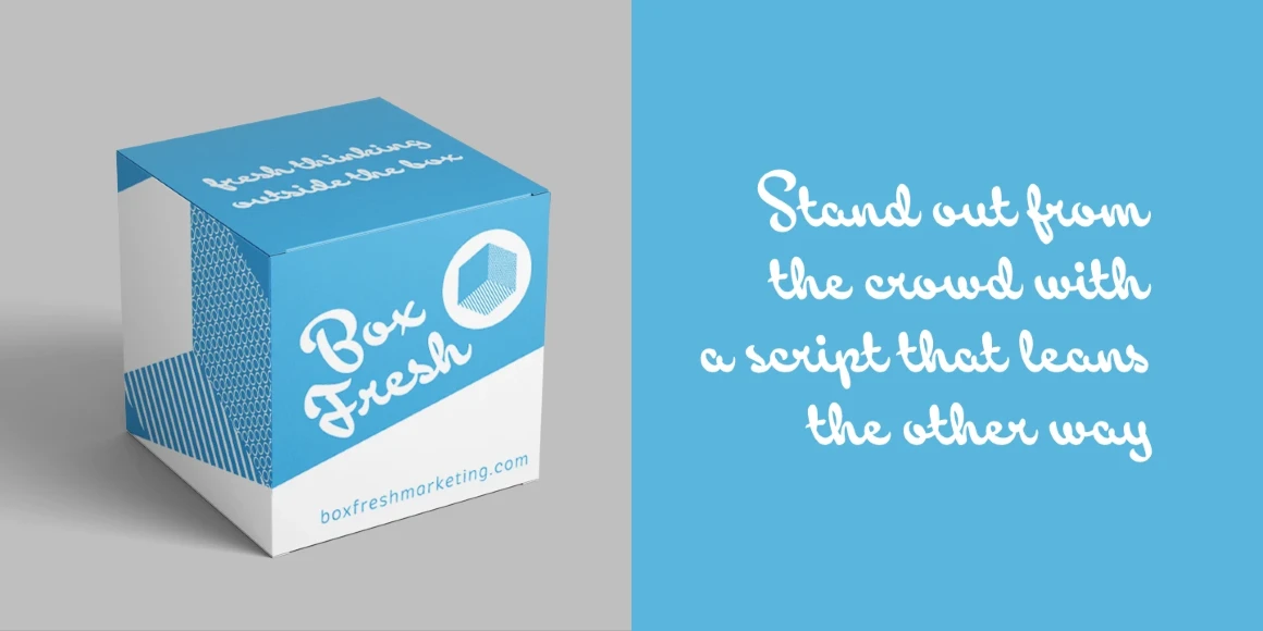 Here’s Backstroke, a laid-back script with a unique voice. Normal and upright italic script fonts line a well-trodden path; left-leaning fonts (or “rightalics” as they’re confusingly called), on the other hand, are a rarity. While fonts that lean the wrong way may be more challenging to fit into your layouts than boring old regular italics, you will be rewarded with their individuality. Backstroke’s restrained but intense voice will put your visual message on the right track. Give it a go?!