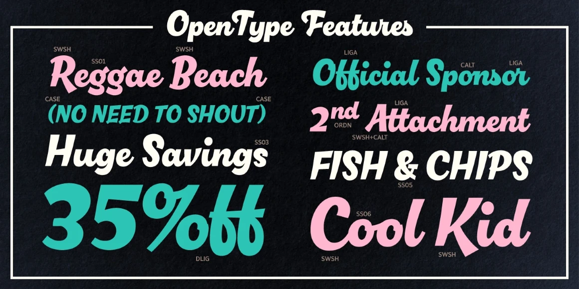 Chill Script is a seriously relaxed typeface that eschews any brush influence in favor of warmth from not being rigidly constructed. So, if you are bored of skinny scripts, look at this sans serif script with a jovial top-heaviness. Graphic designers will know that Chill Script is absolutely the right choice for any combination of gelato branding, trendy magazines, clothing labels, party invitations, and even coffee packaging. Anywhere a little chill and script are needed, choose Chill Script.