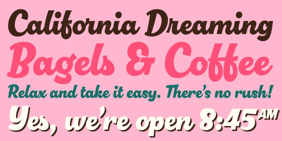 Chill Script is a seriously relaxed typeface that eschews any brush influence in favor of warmth from not being rigidly constructed. So, if you are bored of skinny scripts, look at this sans serif script with a jovial top-heaviness. Graphic designers will know that Chill Script is absolutely the right choice for any combination of gelato branding, trendy magazines, clothing labels, party invitations, and even coffee packaging. Anywhere a little chill and script are needed, choose Chill Script.