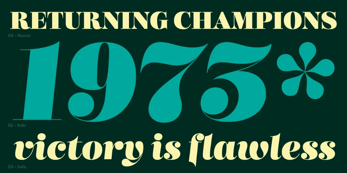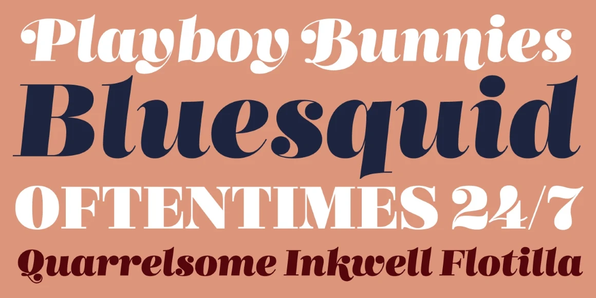 Mastadoni is a bold headliner typeface with high contrast in a Didone style. It has five optically graded styles for designers who understand scale and distance can mean needing slightly less contrast. This typeface has a big x-height, small cap height, and stubby ascenders and descenders, contributing to an overall appearance different from most Didones. Mastadoni would find itself immediately at home in glossy magazines, offering a different aesthetic from other expected choices.