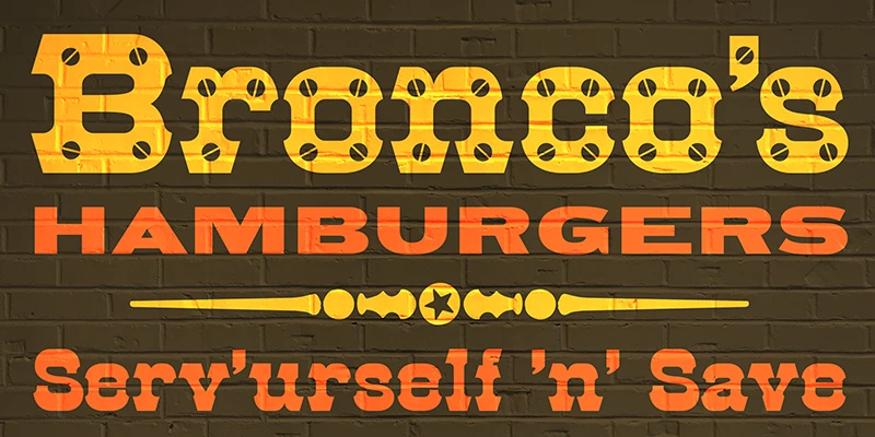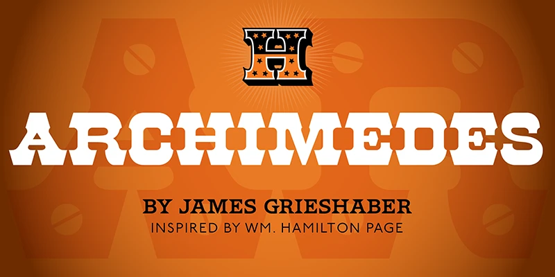 HWT Archimedes is a wood type design sometimes known as Mansard. Virgin Wood Type brought this version to life as a wood type font. The variation with screw heads in the design was first seen in 1879 by William H. Page Co. This new digital version features a variety of styles, including the standard screw head option. The result is a sturdy, industrial font with a certain “joie de vivre” attitude. Not for every designer, but you know this is for YOU!