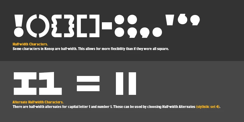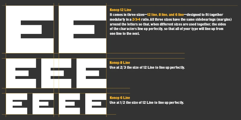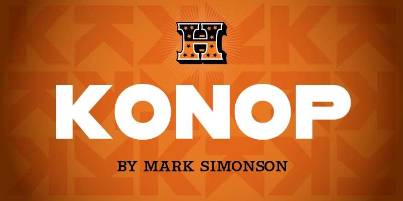 HWT Konop would have been a head-scratcher for old-world printers, but modern-day designers will find inspiration in its modular and rotational features. Mark Simonson named the family for Hamilton Manufacturing retiree and museum volunteer Don Konop. Not only are the letters monospaced, but they are square. They can be arranged tabularly, offering a lot of creative freedom. They adapt to their limitations in charming ways, and the numbers have a lot of personality.