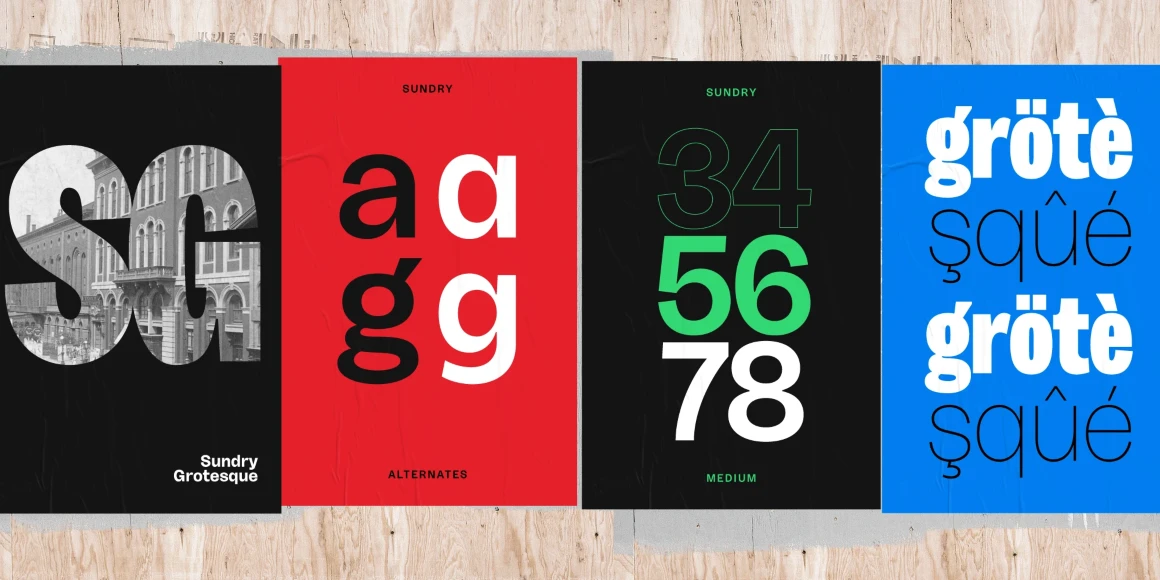 Sundry is J Foundry’s take on the early 20th century grotesque. The design draws influence from various designs of the period. Drawn and cut by hand, these sans have idiosyncrasies and quirks, producing a warm friendly look. The design objective was to even out the quirks and add consistency, without losing the warmth. Sundry looks to balance character and structure for a clear but personable read.
