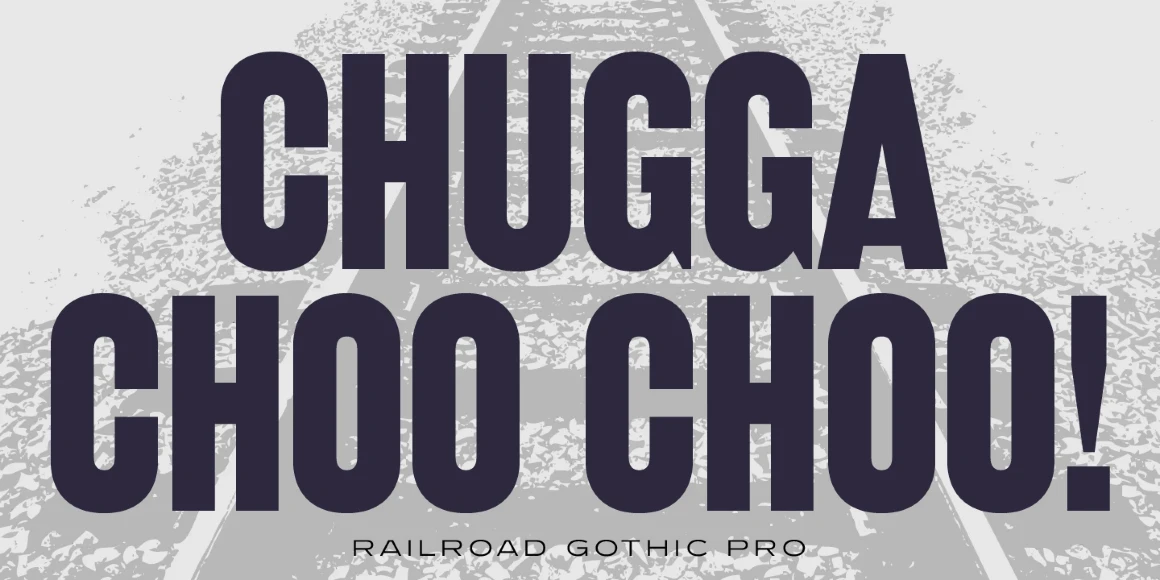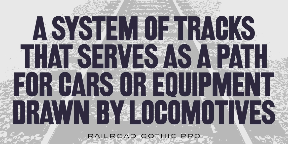 Railroad Gothic is a condensed, sans serif typeface, exclusively licensed from the Ludlow Collection. The original Railroad Gothic was produced by Ludlow in the early 1900’s, and Steve Jackaman (ITF) produced the digital version in 2017. The font provides support for Latin 1, Central, and Eastern European languages, and Cyrillic. Railroad Gothic is reminiscent of typefaces used in 1900’s railyards, hence the name.