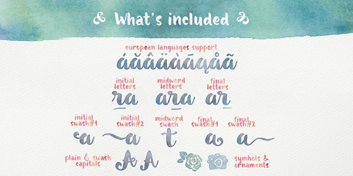 Botanica is a 100% brush-written font family with an inky texture inspired by modern brush lettering and design trends. The fonts were designed to look good together or separately, and possibilities are only limited by your imagination. With two types of initial and terminal swashes, the Script font is a good companion in wedding invitation design.
