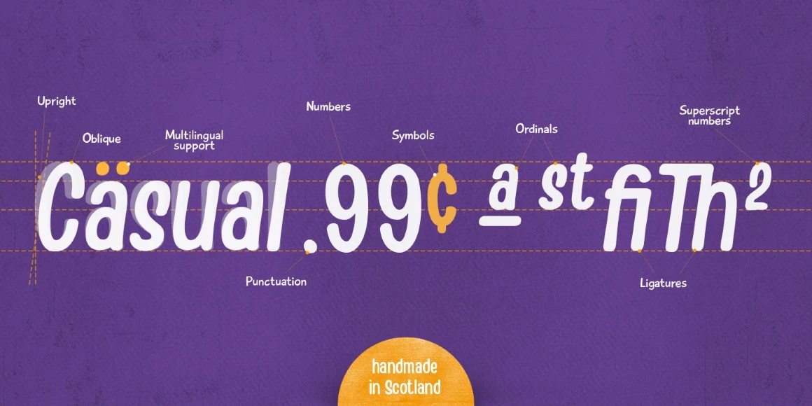 Handy Casual Condensed is an informal brush-written sans inspired by hand lettering found in the poster of the 1960s. Perfect for playing the lead or supporting role on billboards, posters, signage, magazines and books, packaging, and greeting cards. Handy Casual Condensed combines unique character with tons of features, including ligatures, catchwords, stylistic alternates, and an underline feature.