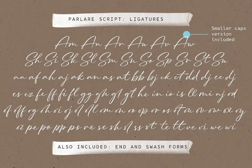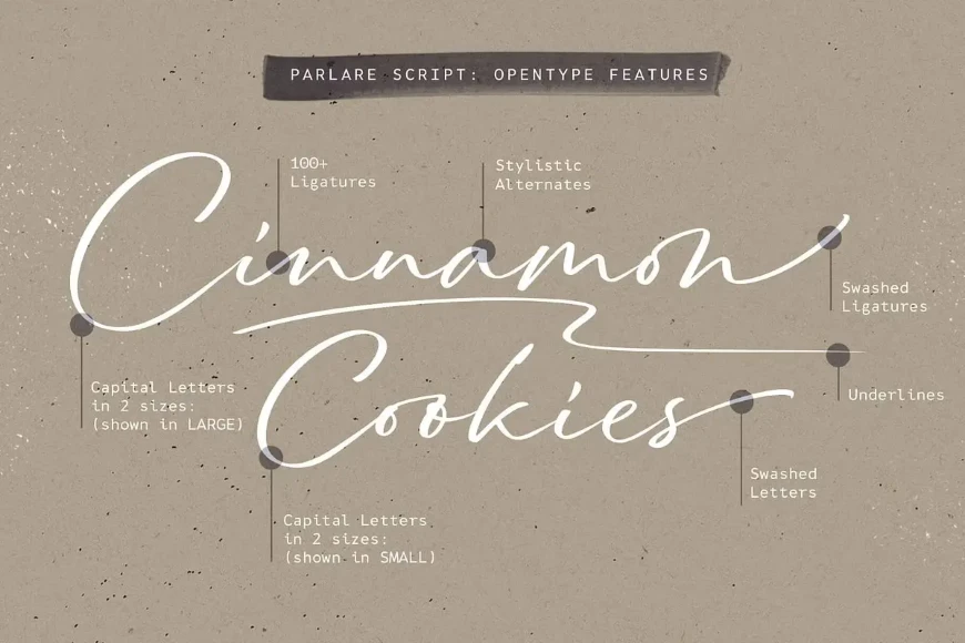 Parlare — speak in Italian — is a modern handwritten signature script with unique organic forms. It benefits from 2 sets of uppercase letters in different sizes, end-of-word swashes, alternates, and more than 100 ligatures to mimic realistic handwriting. As a bonus, there are also 7 underline swooshes included. Parlare is an excellent choice if you are looking for a typeface for elegant branding, wedding invitations and stationery, book, and album cover designs, packaging, handwritten quotes, unique social media posts, greeting cards, and so much more.