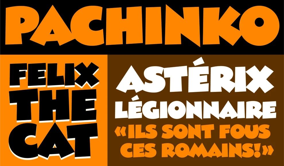 Madcap (2024) has its roots in a style of lettering that its designer, Mark Simonson, used frequently when he was in high school in the early seventies. He was inspired by comic book and greeting card lettering from the sixties. Madcap’s lively appearance comes from its skewed geometry, which avoids anything aligning to a square axis or grid, yet does so with a rhythmic and consistent logic. It’s an all-caps design, and features an alternate lowercase-style “E” and a full set of dingbats.