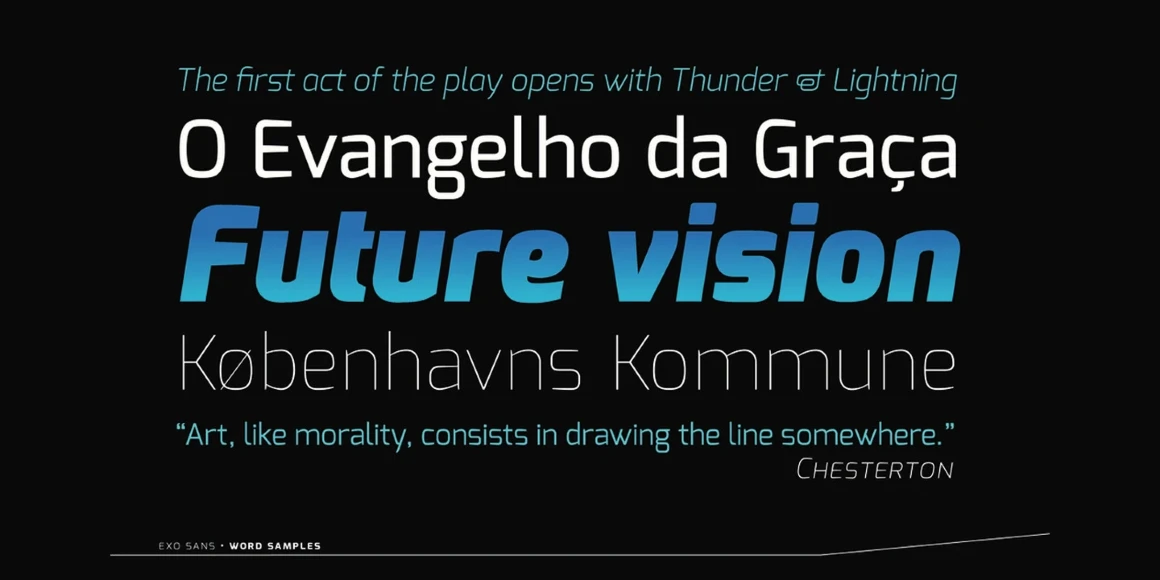Exo is a contemporary geometric sans serif typeface that tries to convey a technological/futuristic feeling while keeping an elegant design. Exo was meant to be a very versatile font, so it has 9 weights (the maximum on the web) each with a true italic version. It works great as a display face but it also works good for small to intermediate size texts.