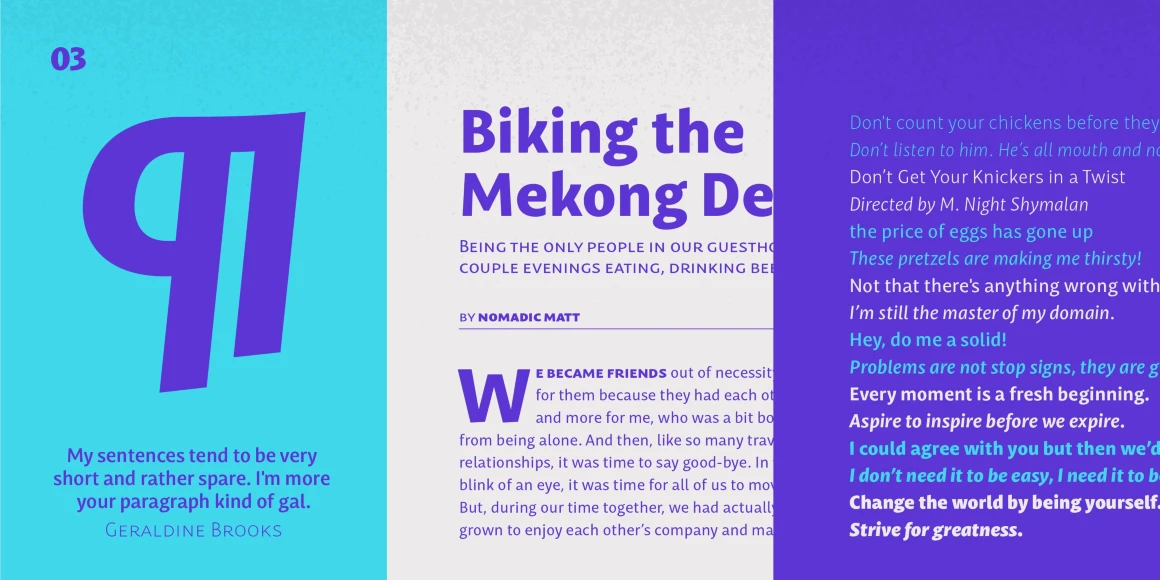 Mastro Sans is a contemporary humanist sans serif. The lowercase shapes are simple yet distinct, its organic design (specially the italic) are based on different stroke modulation ideas combined into a coherent whole. The uppercase is inspired in Roman capital proportions yet keeping the lowercase stroke modulation. Mastro has a total of 16 styles and it covers a large set of languages. It also has many Opentype features, such as small caps, superscript numbers and letters, old style and lining figures, tabular figures, case sensitive forms, fractions and more. It is a design with a lot of personality while being versatile. You can use it in branding, editorial, web and video.