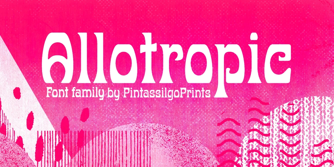 Allotropic is a decorative display face with remarkable Art Nouveau flair. It loosely draws inspiration from a 1914 untitled alphabet from J.M. Bergling’s “Modern Alphabet” and its interpretation by Photo-Lettering from the sixties. It’s a decidedly fab choice not only for vintage and retro designs, but also for creatively contemporary uses in print and on screen. Use it on book covers, packaging, branding, editorial, web, advertising, and apparel! Give Allotropic a go, let the inspiration flow!