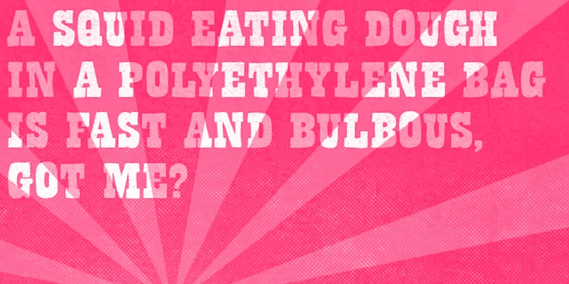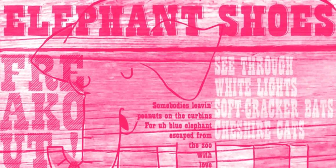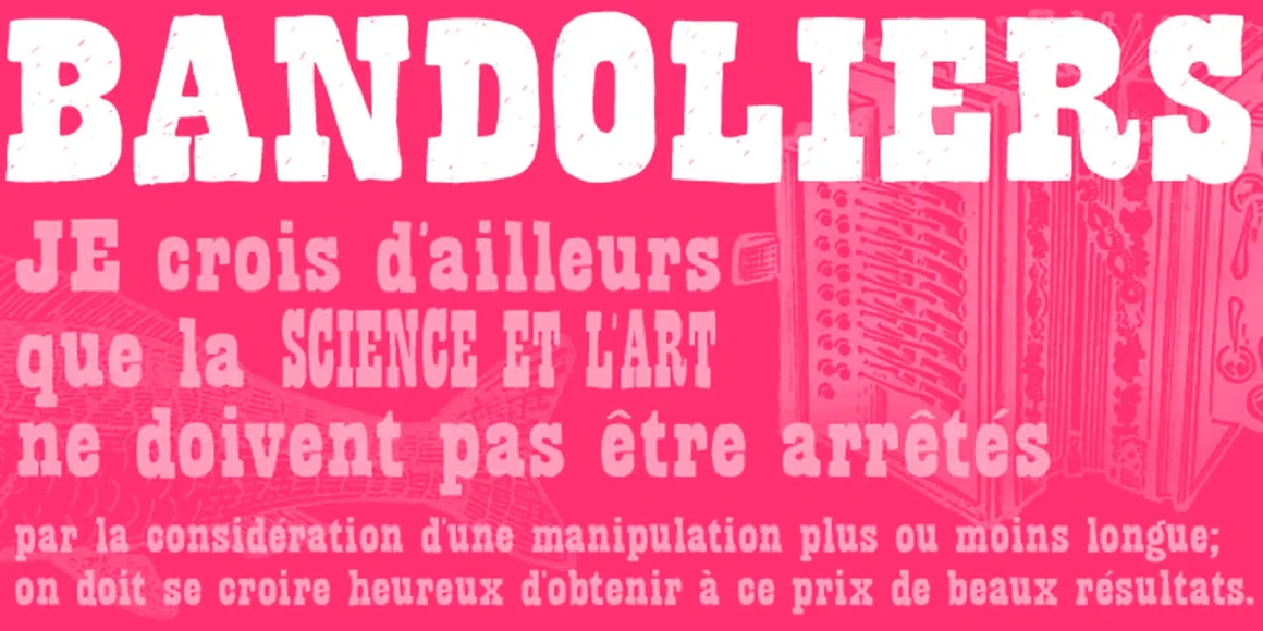 Bandoliers is a ruggedly bold hand-lettered slab serif. Dusty and charmingly rustic, the rough-and-ready texture leans into the Wild West. Beefy, Dizzy, High, Jailed, Regular, Rocky, Shaved, or Slim, this decorative font family offers a range of distinctly expressive options. Bold, nostalgic, and unapologetically loud, use it to add grit and impact to anything needing to make a statement.