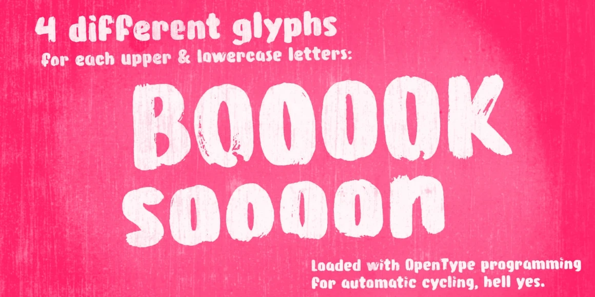 Brushtones is a bold hand-painted design created with a flat brush. To convey true spontaneity, there are numerous alternates, including four different glyphs for each lower and uppercase letter and two variations for figures (and some punctuation marks). Ideal for posters, packaging, titles, and branding that aim to feel handmade, spontaneous, and full of personality.