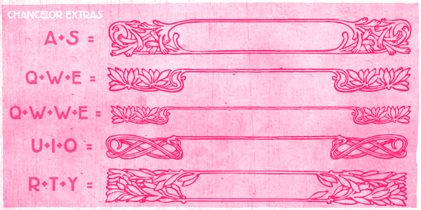 Chancellor is a robust hand-drawn design. Its sturdy letterforms take inspiration from Plakatstil-era posters, bringing up cool adornments to spice up your lettering designs. This all-caps typeface has two versions for each letter, amplifying your composition choices. A great tool for creative display uses.