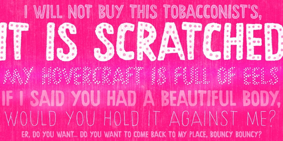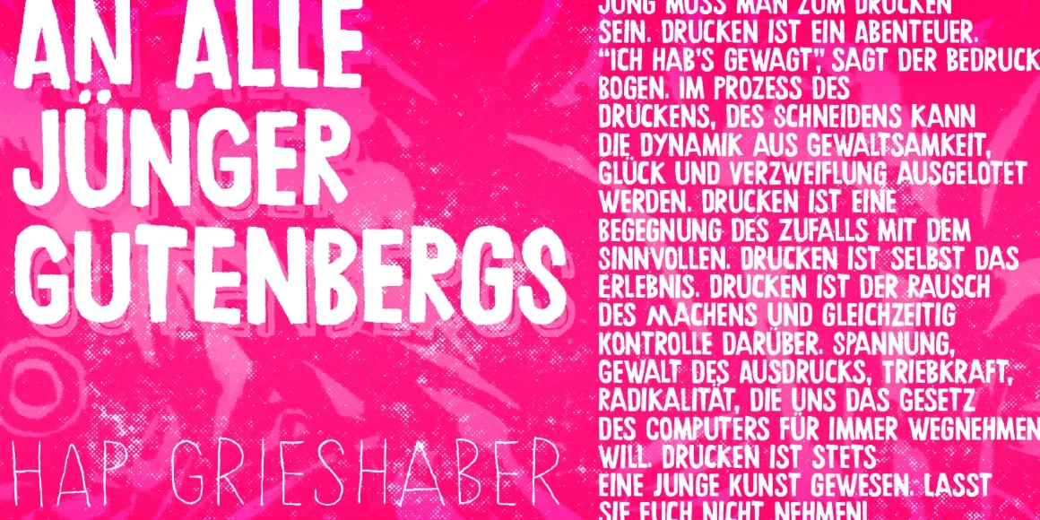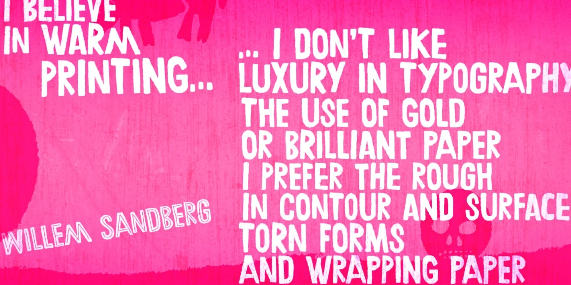 Chronic is a decorative, hand-lettered sans serif. A friendly all-cap design initially inspired by the art of HAP Grieshaber but includes some elements by Willem Sandberg, too. Two artists who lived through two world wars, struggled for freedom, and consistently manifested their love of liberty with words, works, and actions. Black, Dots, Dotted, Inline, Line, and Regular, plus Extras, too! This font family is perfect for packaging, book jackets, and posters!