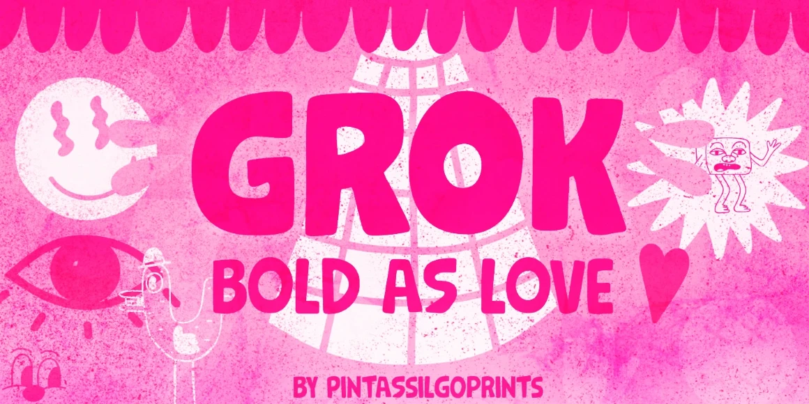 Grok is a bold-as-love hand-drawn typeface. Assertive and soft. Showy and friendly. Perfectly suited for any display use: packaging, signage, web, editorial design, and book covers. It’s an all-caps font with two choices for each letter, giving it a handcrafted look. Grok comes in three styles: Outline, Regular, and Slim. There’s also a nifty picture font with dozens of stylistically matching dingbats to beautify your words. Make a bold typographic statement with Grok!