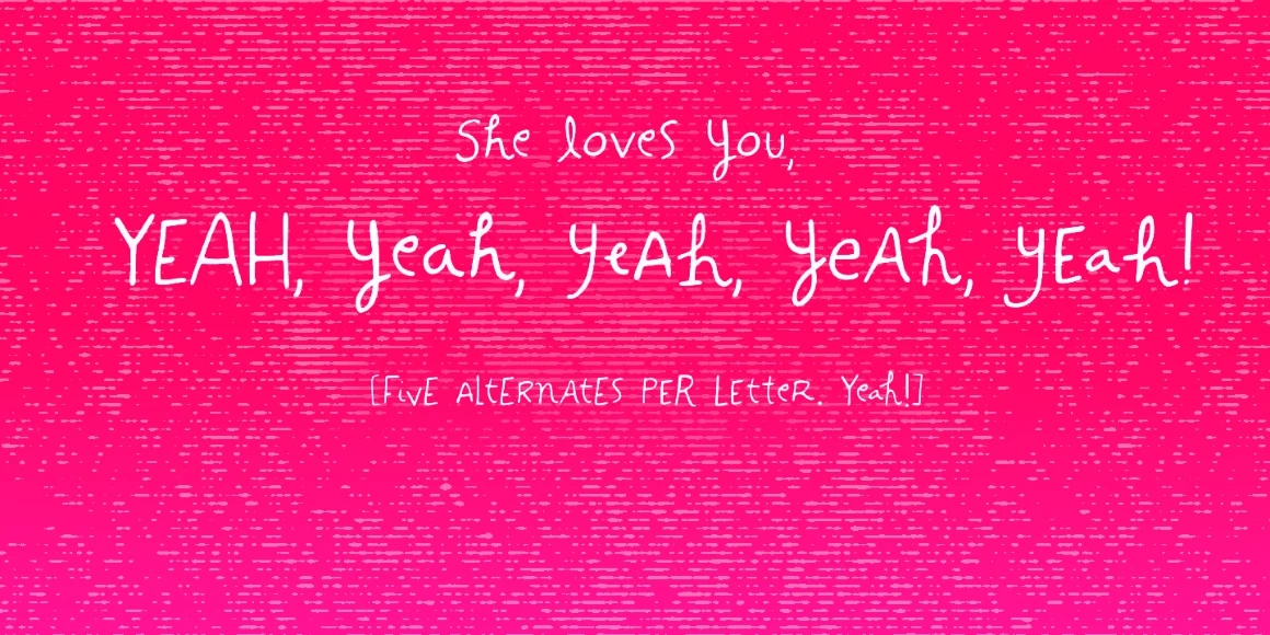 Hand It is a carefully messy, sweetly odd, friendly family that conveys a cool — but warm — organic feel. With mixed letterforms and somewhat unexpected choices here and there, each font has a handful of alternates for a more natural look. There are five alternates for letters, three for numbers, plus alternates for punctuation marks. Discerning designers will know that Hand It is just strange enough to fit design briefs requiring an imperfectly perfect hand-lettered look.