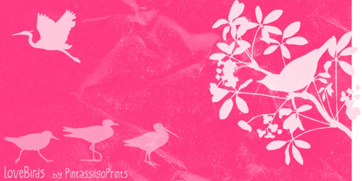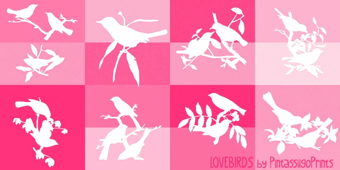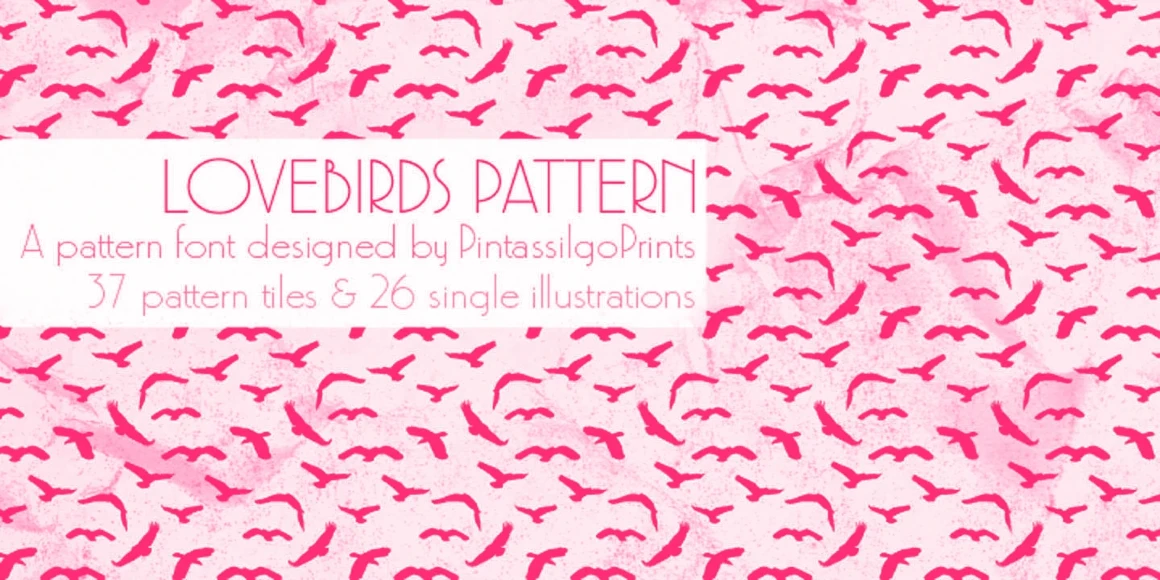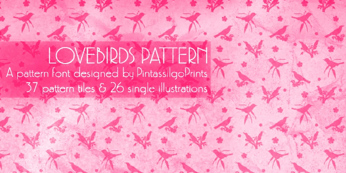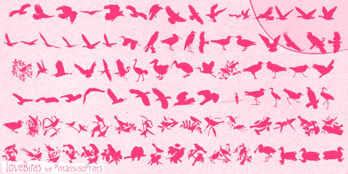 Lovebirds is a font family made up of a handful of illustrated birds and nature-inspired patterns. Use them to add decoration to packaging, magazines, books, scrapbooking, and greeting cards.