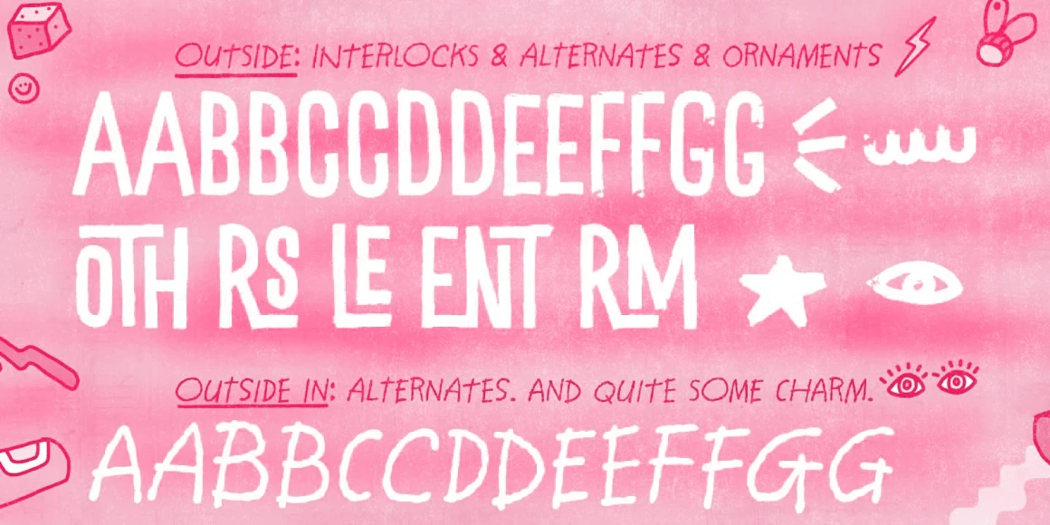 Outside is a laid-back, hand-lettered font family with two expressive styles. Outside In is a spirited script suggestive of notes scrawled in the moment, and Outside Regular, by contrast, is a tall, all-caps sans with a dry-brush texture and solid structure. Used together or separately, they offer a balanced mix of spontaneity and presence — ideal for book covers, handmade goods, packaging, posters, or any design aiming for authentic human energy. Give it a try, easy-going-ness guaranteed!