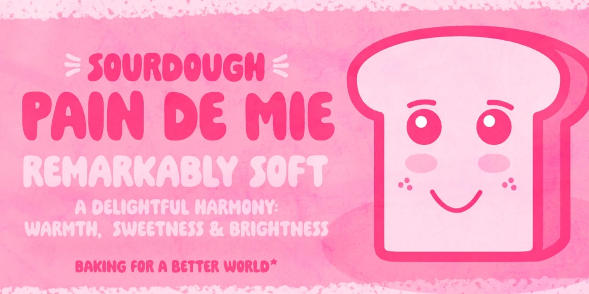 Pain de Mie is a pillowy soft and sweetly social display typeface. An all-caps font with alternates for adding bounce and variety. The consistent rhythm and gentle curves give it a casual charm that’s easy to read but packed with personality. It’s also kinda creamy and bubbly too. And there’s a handful of drawings to add extra charm here and there! It’s great for branding, food packaging, school flyers, or any other application that benefits from a warm, informal tone with high visual impact.