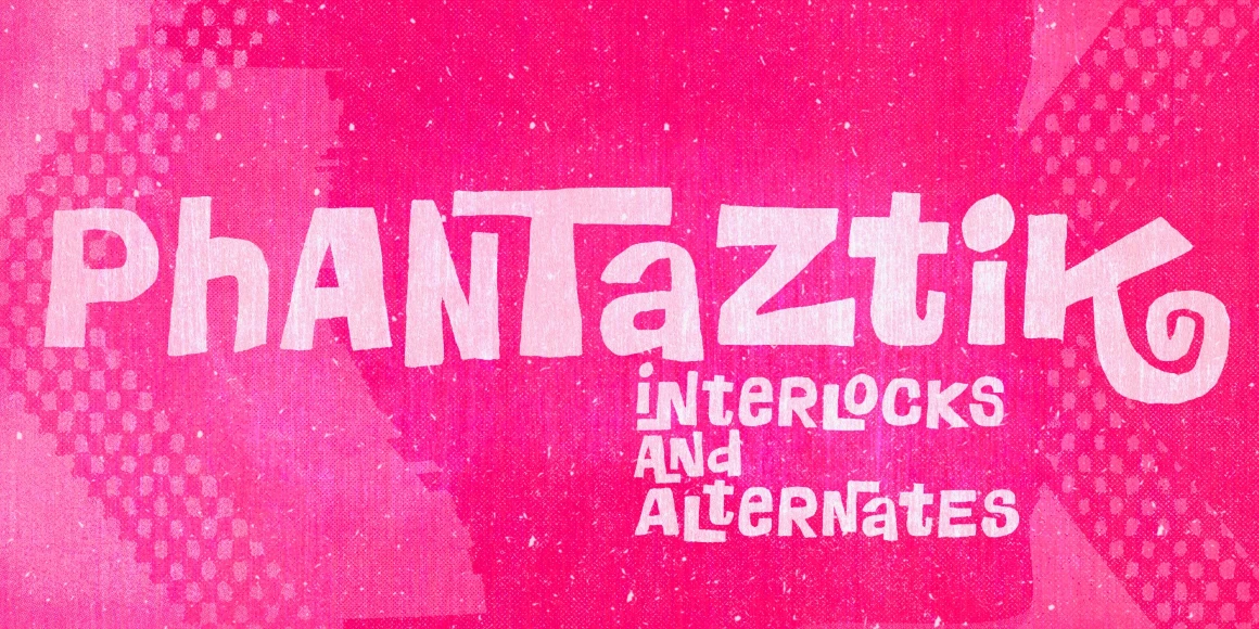 Phantaztik is a bold and groovy display font packed with stylish interlocks and uncommon alternates. Despite its quirky nature, thanks to strong contrast and clear glyph separation it is usable in a large range of sizes. The exaggerated, whimsical forms make it especially eye-catching typography and graphic design. Full of cheer and optimism, it’s a fantastic option for packaging projects, book covers, game titles, apparel, and many more creative applications. Feel-good designs just got easier.