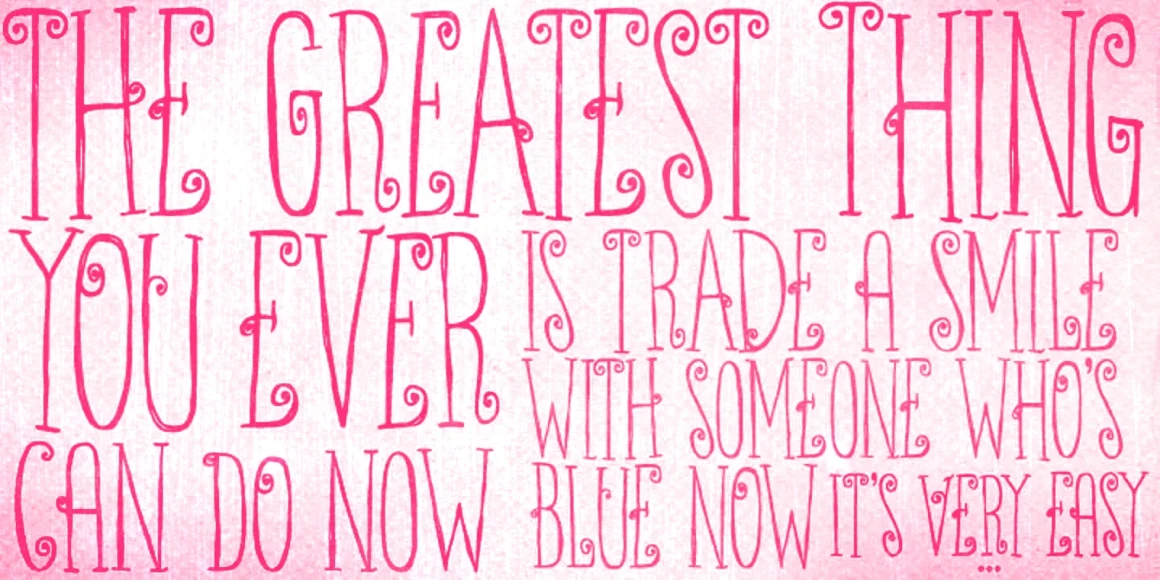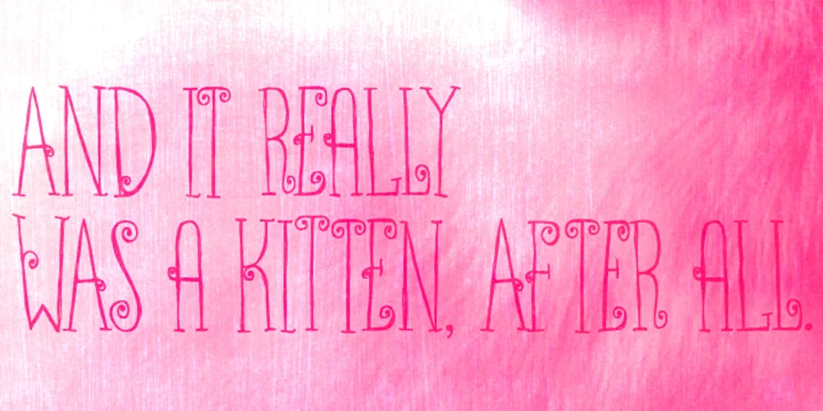 Ritornelos is a lively all-caps hand-drawn typeface. Condensed and quirky with serifs and swirls, it dances with ornate energy and lyrical detail, particularly when the alternates are used. Don’t miss the handy set of ornaments to add extra charm! Each character feels lovingly crafted — perfect for adding a touch of drama, elegance, or playful nostalgia. Whether used for book covers, boutique branding, or decorative headlines, Ritornelos turns every word into a performance.