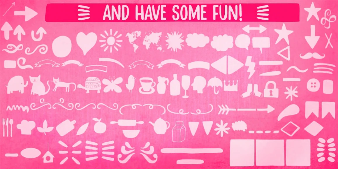 Stick-A-Round is a stylish contemporary brush-lettered typeface. It started as an attempt to domesticate our wild Daft Brush font. During the process, however, it began to take on its own shape and personality, with friendly, rounded terminals, dynamic interlock pairs, and oodles of alternates. Besides showing good humor, this font has a lovely mate loaded with handy ornaments! Stick-A-Round, have some fun, and jazz-up candy packaging, children’s books, party invitations, and board game designs.