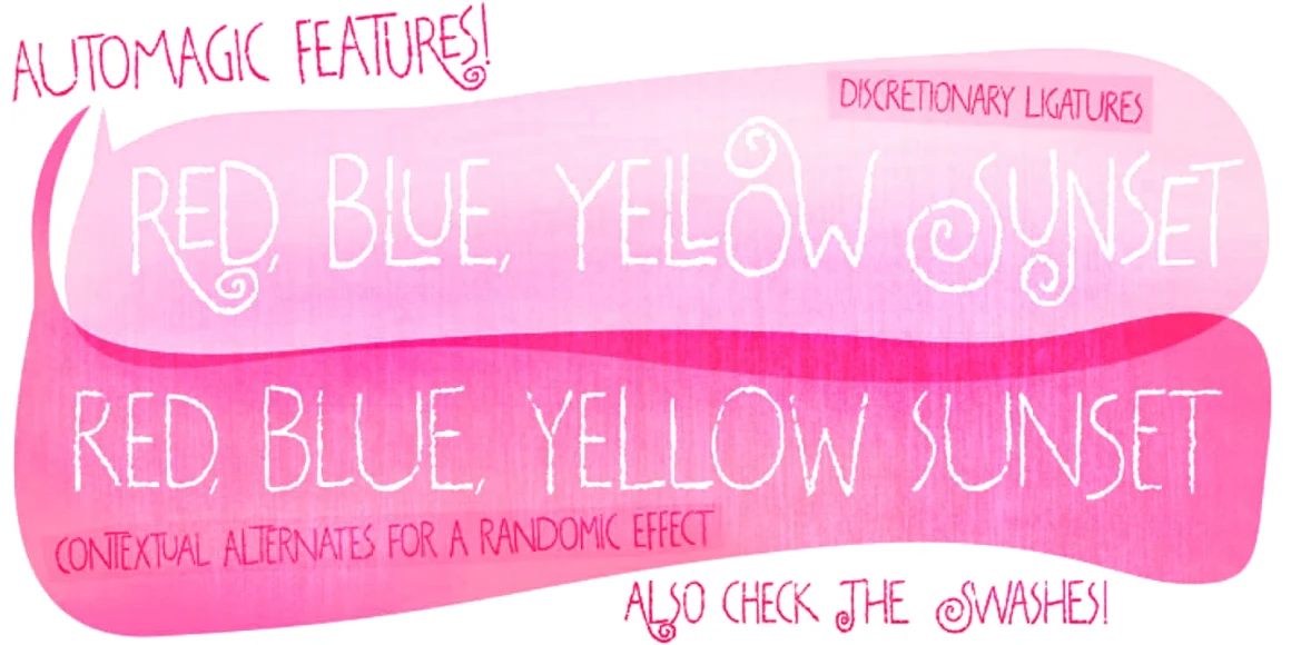 Transitore is a lively and playful hand-drawn typeface. It is not only chockfull of witty alternates, swashes, ligatures, and curly details, which help create a convincingly handcrafted look. And the cherry on top? Three of the styles can be stacked as layers for easy color addition, and Transitore Splashes generate irresistible splashes of ink. This family is a jam-packed toolbox that offers endless ways to style packaging, ads, merchandise, labels, invitations, and posters. Enjoy!
