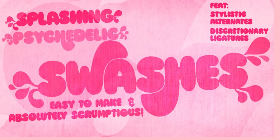 Ziclets is a puffy, soft display sans serif. With oodles of juicy alternates and a soupçon of ligatures. It seems made for psychedelic projects, but it can easily crossover from kid-friendly designs to parent-approved concepts. Use it large to make a splash or small to create a more subtle statement. Either way, it will burst through the noise. Use judiciously on book covers, board games, food packaging, children’s cartoons, television titles, and circus posters.