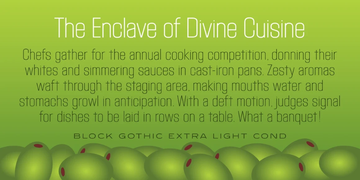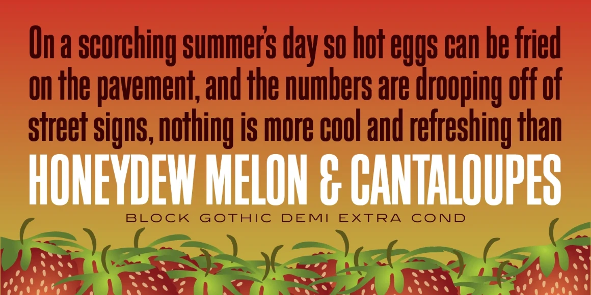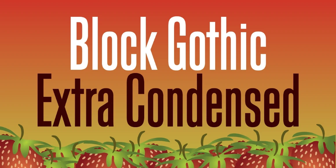 Block Gothic Extra Condensed is a sans serif font family exclusively licensed from the Techni-Process (TP) Collection. Steve Jackaman (ITF) redrew and produced the family in 1994. Block Gothic Extra Condensed has a fashionable modern feel, and is quite sturdy in its heavier weights. The family clean and legible in all sizes, and adds a unique beauty to projects. Its sister family, Block Gothic Condensed, is a great alternative for those seeking an uncompressed version of the family.