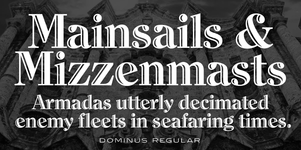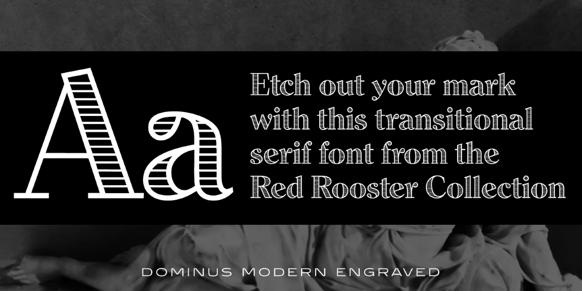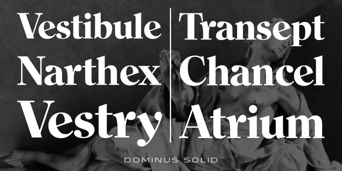 Dominus is a hand-tooled, engraved serif font family. International TypeFounders exclusively licensed the Stephenson Blake Collection, which included Dominus. Steve Jackaman (ITF) created three additional weights, expanded the original inline version, and produced the digital version in 1997. At display and subhead sizes Dominus is visually commanding yet sophisticated, elegant yet powerful, and highly legible.
