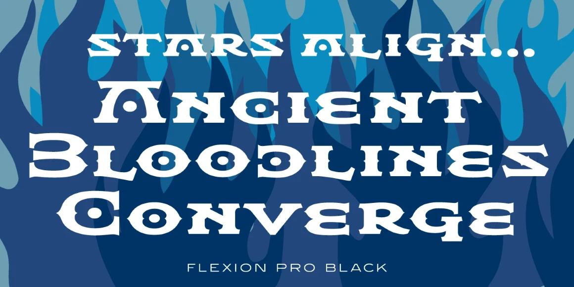 Flexion is a decorative font family. Designed by Hal Taylor and John Langdon and produced by Steve Jackaman and Ashley Muir. While working on the movie adaptation of “Angels and Demons,” Dan Brown approached Langdon with the idea of creating title credits based on ambigrams. The film ended up being too long, but Langdon decided to release it instead of shelving the family. Flexion is reminiscent of branding irons and could easily be used to create strongly imaginative identities.