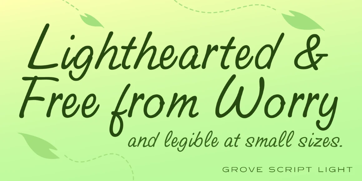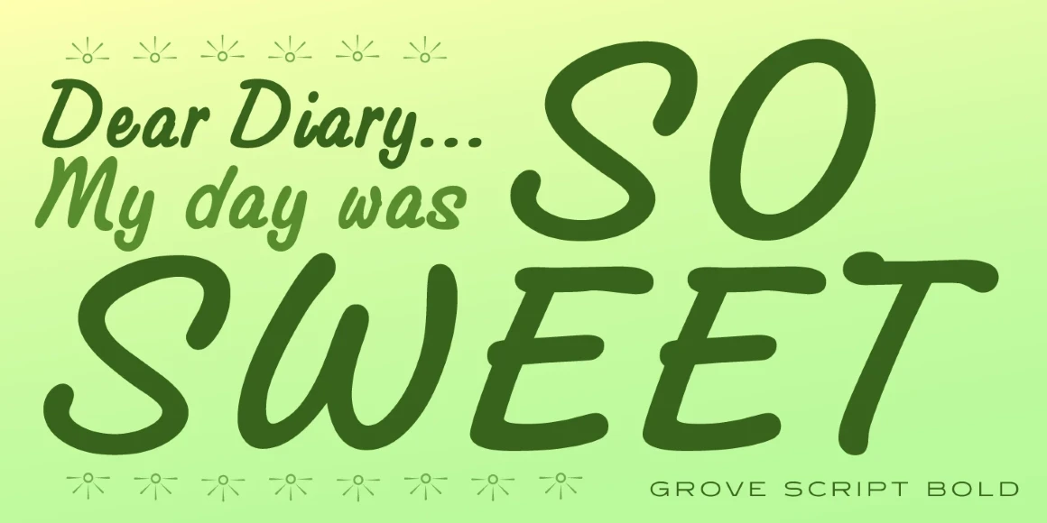 Grove Script is a casual script font family. It began its life as a single typeface at QBF in Manchester, England, under the name ‘Em Script.’ Grove Script’s digital letterforms were manufactured by Pat Hickson (P&P Hickson) exclusively for the Red Rooster Collection, and its full commercial version was produced by Steve Jackaman (ITF) in 1992. Grove Script has a comfortable feminine feel, and was designed with legibility in mind. Its sweeping strokes display nicely at all text sizes, and brings charm to any project.
