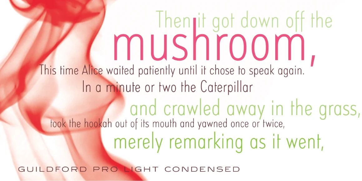 Guildford is a decorative sans serif font family, exclusively licensed from the Stephenson Blake Collection. The family was completely redesigned and produced in 2011 by Steve Jackaman (ITF) and Ashley Muir, with italic and condensed weights added to the originals. Guildford Sans is identical to Stempel’s Elegant Grotesque, the 1928-29 design by Hans Möhring. The name of the typeface holds sentimental value to Jackaman, as he grew up near and frequently visited the town of Guildford in Surrey, England. Two sister type families, Relish and Windlesham, were developed after the success of Guildford.