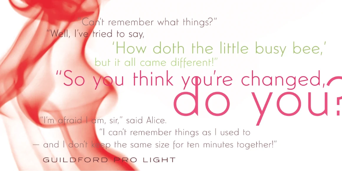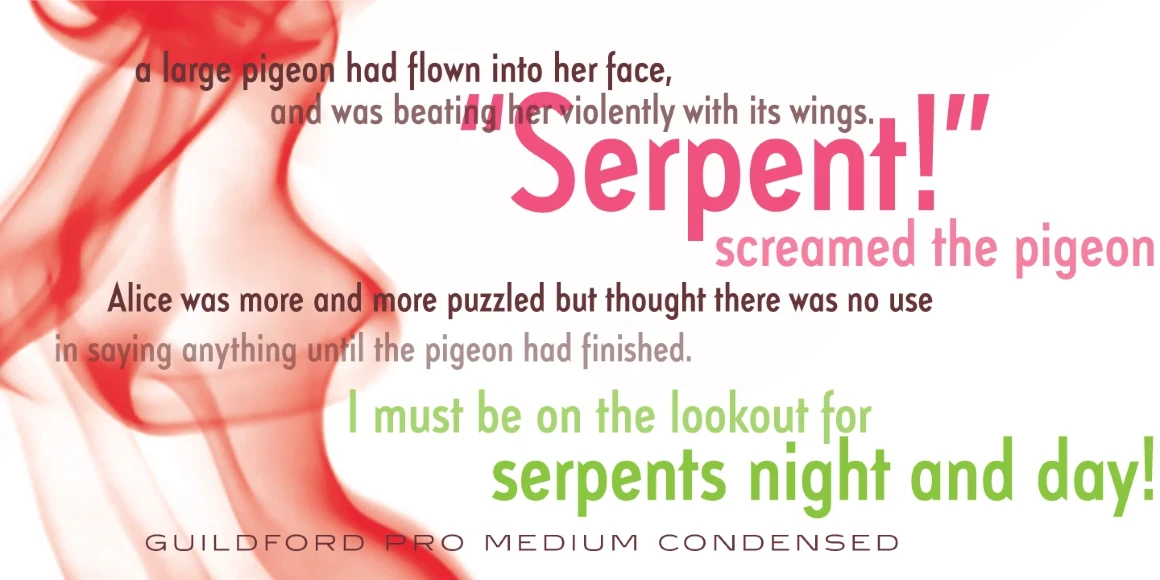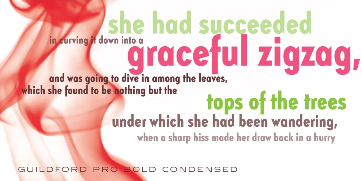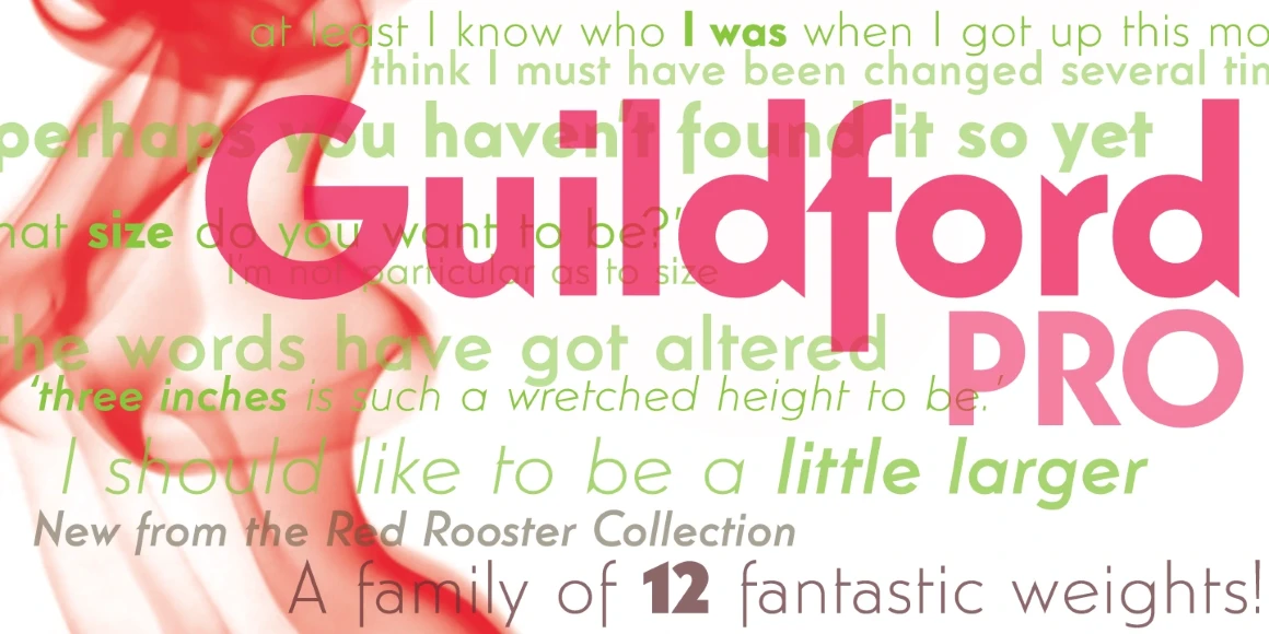 Guildford is a decorative sans serif font family, exclusively licensed from the Stephenson Blake Collection. The family was completely redesigned and produced in 2011 by Steve Jackaman (ITF) and Ashley Muir, with italic and condensed weights added to the originals. Guildford Sans is identical to Stempel’s Elegant Grotesque, the 1928-29 design by Hans Möhring. The name of the typeface holds sentimental value to Jackaman, as he grew up near and frequently visited the town of Guildford in Surrey, England. Two sister type families, Relish and Windlesham, were developed after the success of Guildford.