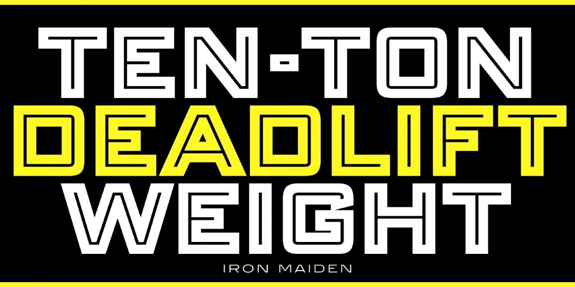 Iron Maiden is an all-caps, decorative, sans serif typeface in which the normally round letters are squared, e.g. the C, G, O, P, Q, R, and U. It was designed and produced by Steve Jackaman in 1997, and shares similarities with Red Rooster Collection’s ‘Banque Gothique’ font family. Iron Maiden has an in-your-face, masculine feel, and is incredibly dynamic at display size. Much like the band of the same name, this typeface shouts your message to the heavens.