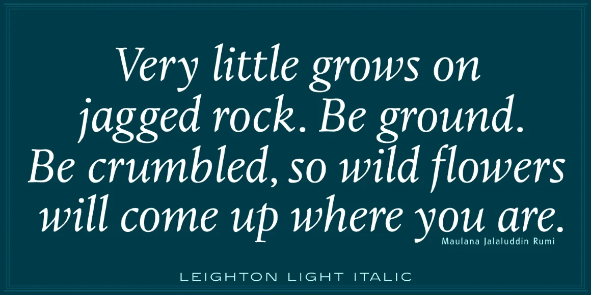 Leighton is a four-weight serif font family that was created in 1993 by Paul Hickson (P&P Hickson) and Steve Jackaman (ITF) exclusively for ITF’s Red Rooster Collection. Its designs are loosely based on the typeface Lectura, which was designed in 1966 by Dick Dooijes for the Amsterdam Foundry. Leighton is a conservative, Dutch-style serif font. It is ideal for upscale corporate projects and excels at any size.
